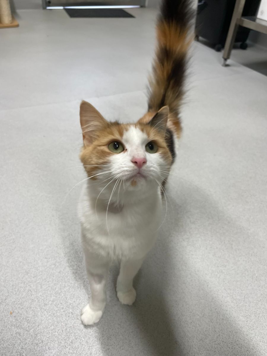 Personality: I am a curious young girl who loves to know what everyone is up to, and I enjoy exploring as well as monitoring the birds outside and sunbaking. I love using up all my energy with any toys I can find and running around the room, but I most enjoy it when my human friends are close to me.
