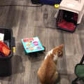 He loves playing and being just a kitten himself, he will turn empty litter bags and cat beds into toys too. He absolutely loves other cats and wants to be everyone’s friend. If at first he does not succeed in wining a fellow feline over, he will try again until he does.
