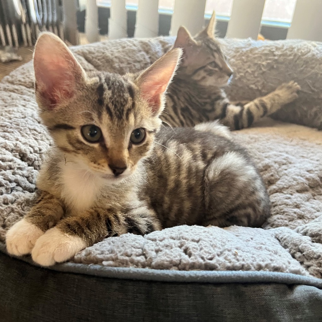 Hello there, it's Zacky the kitten here. I have just started eating solid foods. I like wet food, biscuits and milk and am very playful and confident. I am a playful and happy little boy. I am hoping that my name is not a typo so remember it is Zacky, not tacky or wacky. I am a good boy! I am hoping that I might find a home very quickly I am looking to fit in with a caring home that would like a lively kitten to liven things up a little. I am free-wheeling little man who loves to play and cuddle and play rough and tumble with my siblings. Can you find a place in your heart and your home for me?