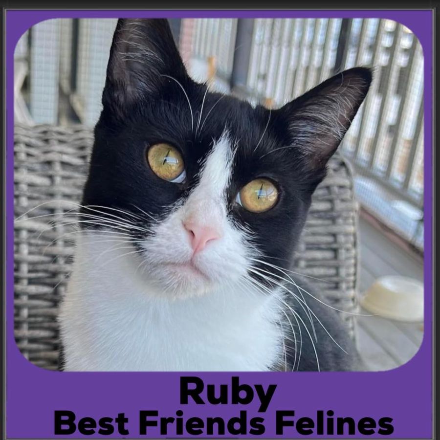 Ruby, the petite charmer with a heart of gold, is seeking a forever family to call her own! While she may not be the biggest human snuggler, Ruby has her own unique ways of showing affection and making sure she's never too far from where you are. If the other kitties are getting cuddles on your lap, Ruby will happily join in, creating a purr-fect harmony of feline love.