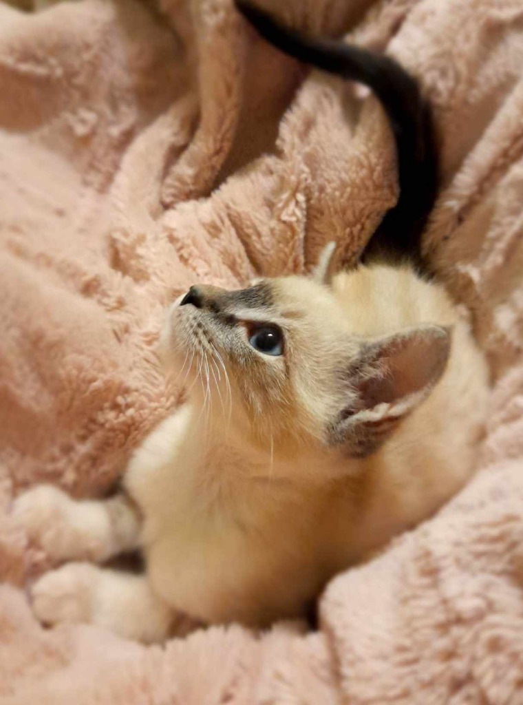 Hi my name is Maid Marian. Like my brothers I was only one day old when I come into care. I was the smallest and had a hard time without my mum. She just went away one day and never came back so my brothers and I had to be hand-raised. I'm a very sweet girl and love being around people and getting lots of pats and kisses. I also love playing with my toys and sitting on your lap. I'm kitty-litter trained. So if you are looking for beautiful, sweet girl - that's me.