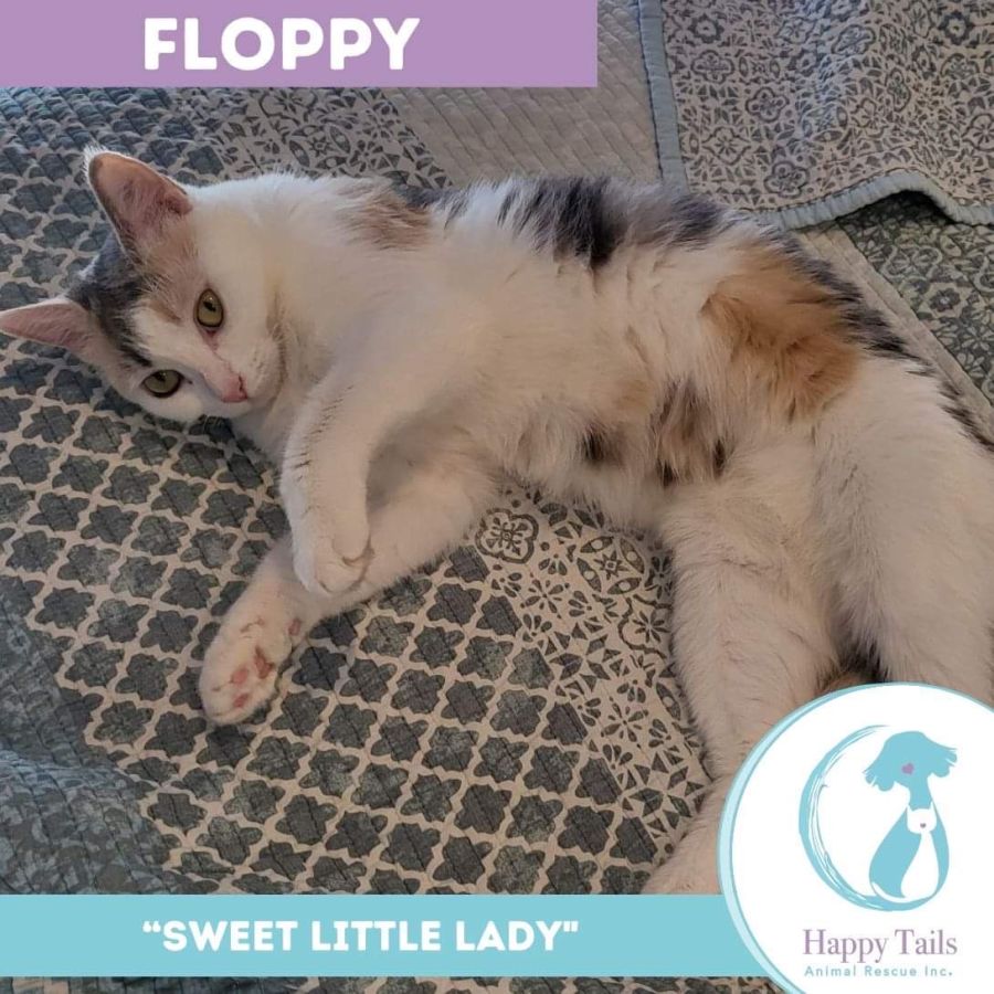 Floppy came to Happy Tails as a young single mum with nowhere to turn, but luckily she came into our care just in time to have 8 little kittens! Now that they have all been adopted, it's Floppy's turn to find a forever family. Maybe that could be you?!