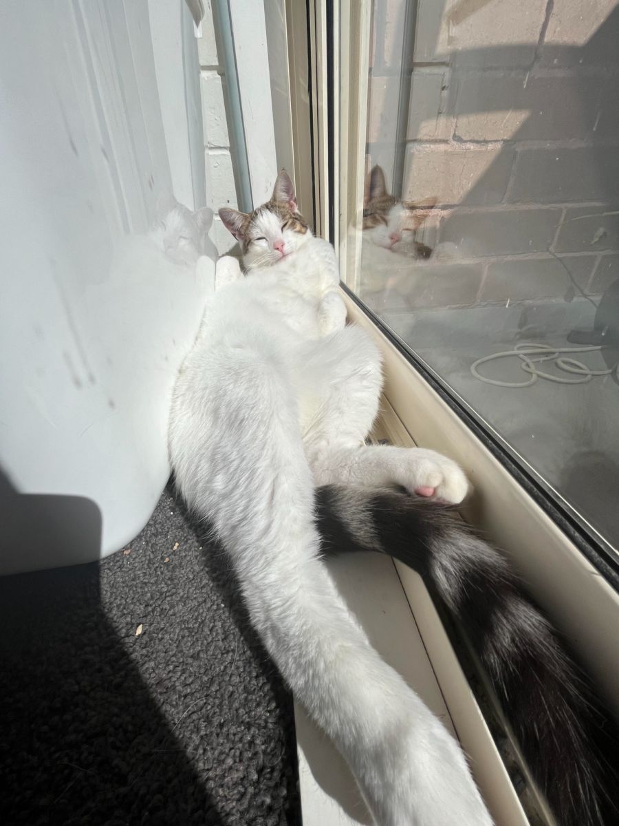 He loves to run around and play with other cats, getting along well with them. He also enjoys taking naps in the sun, on beds or couches. Loves to greet his human when they come home!