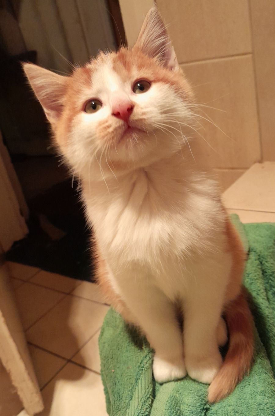 Sol is a super sweet Ginger and white kitten whose fur is incredibly soft. At his current age, Sol is already showing signs of becoming a big cat, with a sturdy frame and strong build.