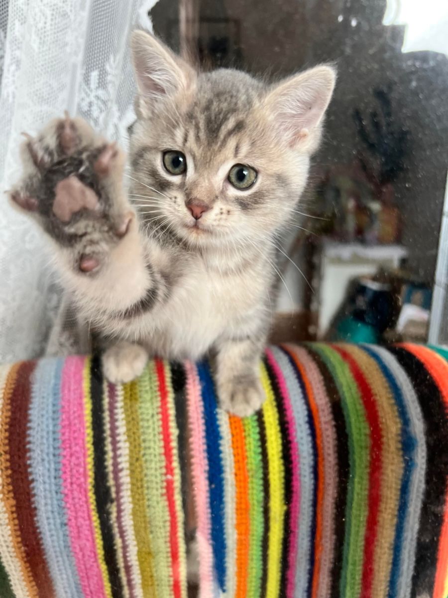 Rodger is a brave and playful male kitten who loves to explore. He's always up for an adventure and loves playing with toys, tunnels, and other kittens. Rodger loves to show off his bravery by taking on new challenges - he's even started learning how to bake! He's a quick learner, so it won't be long before Rodger is an expert baker.