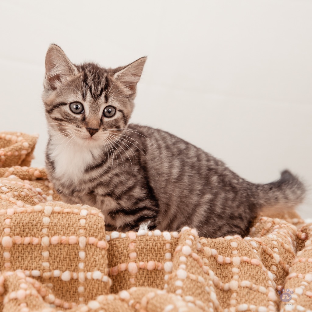 Eda. I am the cutest little 8 week old tabby girl with white socks. I am a little bit shy, however come out of my shell once I am comfortable with you. My stylist thinks I look like a doll, I am purrrfect