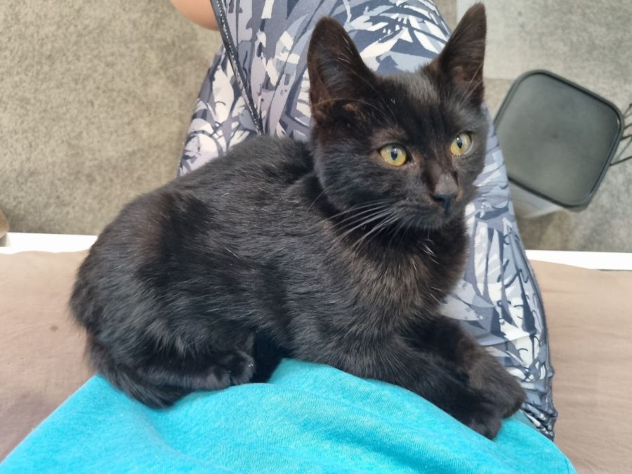 Coco is a male kitten with beautiful fur that loves to be snuggled and enjoys sitting on a lap. He is the biggest of his litter and has a strong will, which makes him an independent and playful kitten. He loves his food and anyone who feeds him, so he’ll always come running when it’s time for dinner. In addition, he loves getting pets from his family members and always appreciates the attention. If you’re looking for an affectionate companion that loves to play, Coco might be the perfect fit for your family! Coco currently lives with his brother Piccolo and his sister Latte and can be adopted by himself or with a sibling.