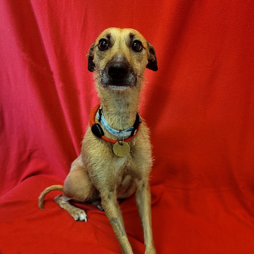 Jolly Gyppi is a sweet las looking to jump into her new life with her forever family. When first meeting Gyppi she say be shy however is a very inquisitive young girl, who would love to go on adventures and see the sights with her new family. As Gyppi is a whippet she may feel the cold a little more and would really appreciate a warm cozy jacket for those chilly days. As with all our dogs we recommend obedience training for Gyppi to ensure she becomes a well manner lady.