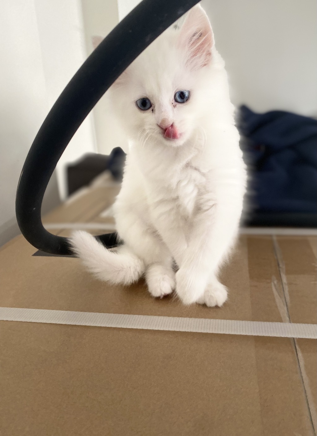 I'm a very happy and confident kitten that would suit a variety of households- as long as I have some company throughout the day to keep me entertained. I could live with other animals as long as management and gradual introductions are done to set us all up for success.
