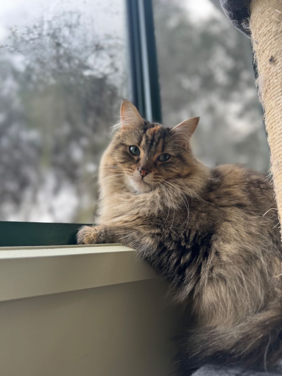 Elvie is not your typical "lap cat," as she enjoys her solitude; still, she loves being admired and adored from a distance. If you value the companionship of a cat who loves to be seen and admired without always craving for scratches and laps, Elvie would be the perfect addition.