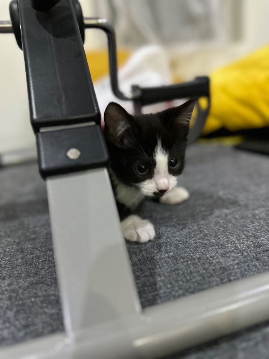 Pixel is a female kitten that was born on 1/4/2023 and she is an absolute delight! Her white-tipped tail earned her the name Pixel, and she is affectionate and sweet. She loves to rub against her humans and cuddle up for some attention. She also loves to play and can be quite bossy during playtime with other cats, which is so funny to see as she is tiny! Pixel is very confident and would ease into a new home easily.
