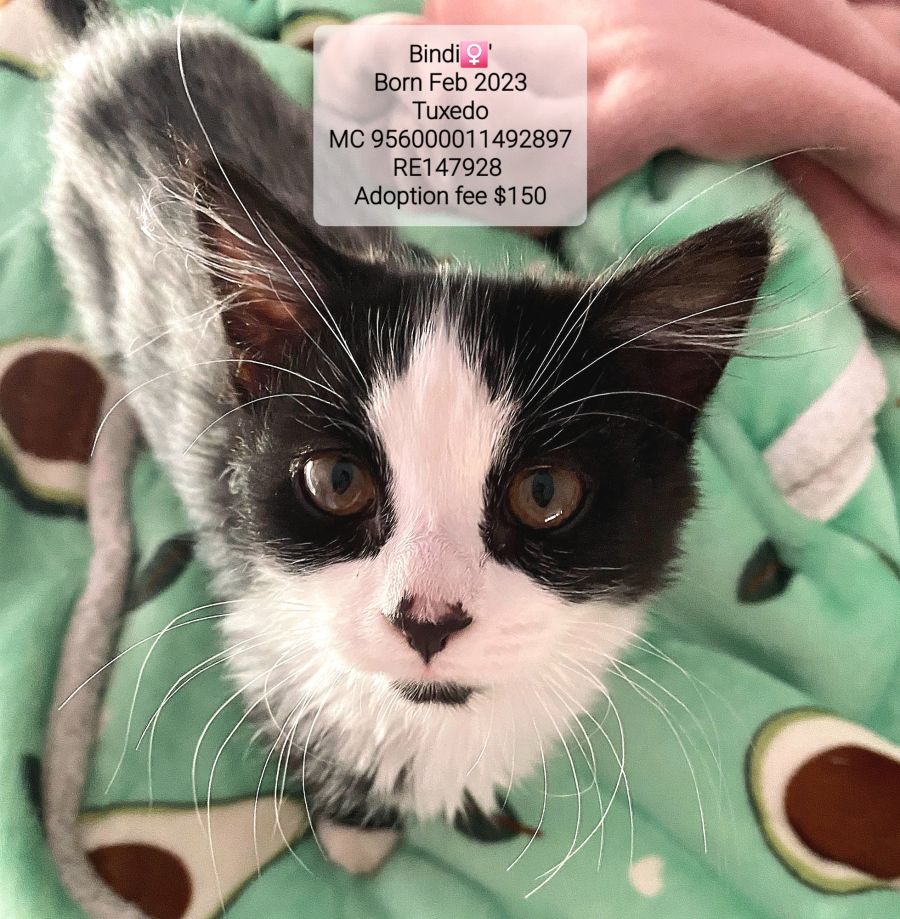 Beautiful Bindi is the snuggliest kitten her foster parent has had. She loves to greet you when you get home and wags her little tail in excitement when you talk to her.