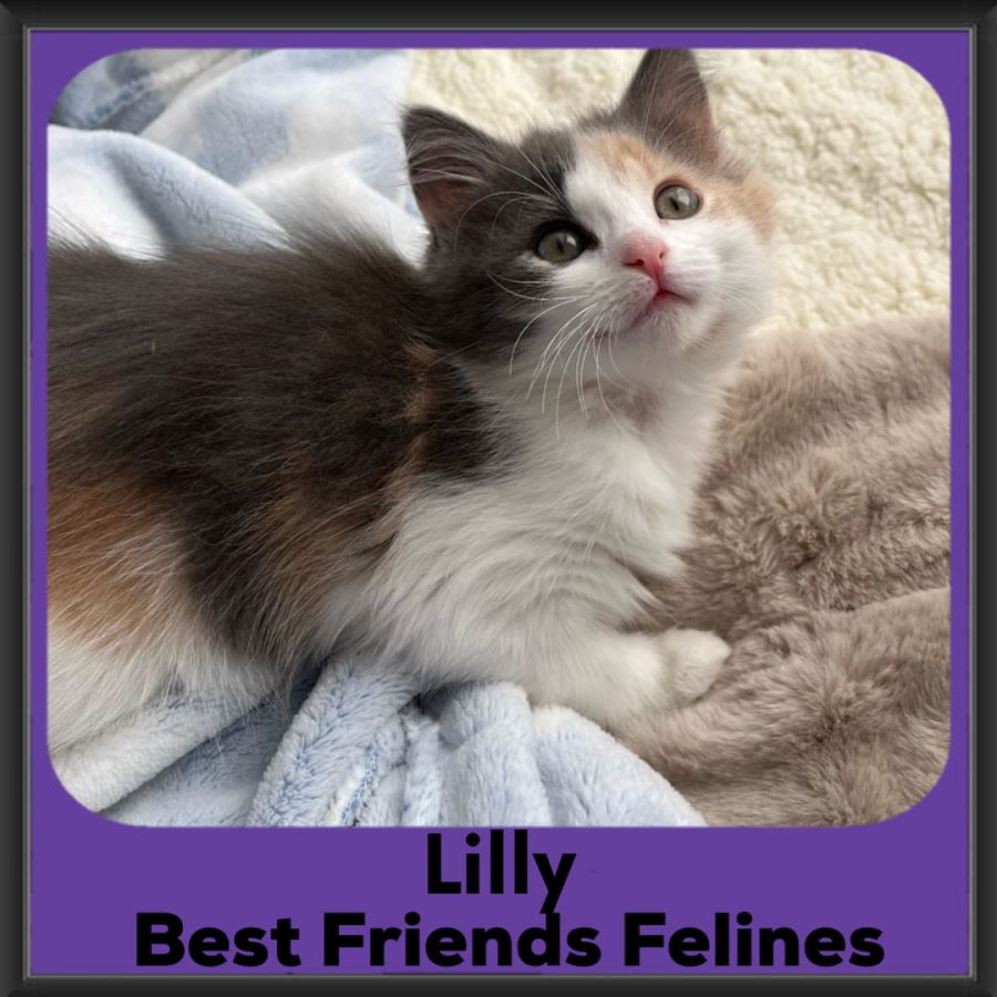 Lilly is an extremely sweet and snuggly little girl. She always has a lot to say, chirping and purring nonstop when she sees her humans. Lilly is always looking for a snuggle once she has finished with her playtime, meowing to make sure she has her humans attention. She likes to curl up on your lap and give you a smooch, and she loves the company of her two sisters. Lilly is a very curious kitten, she loves to explore and she has a lot to say. She is a beautiful companion.