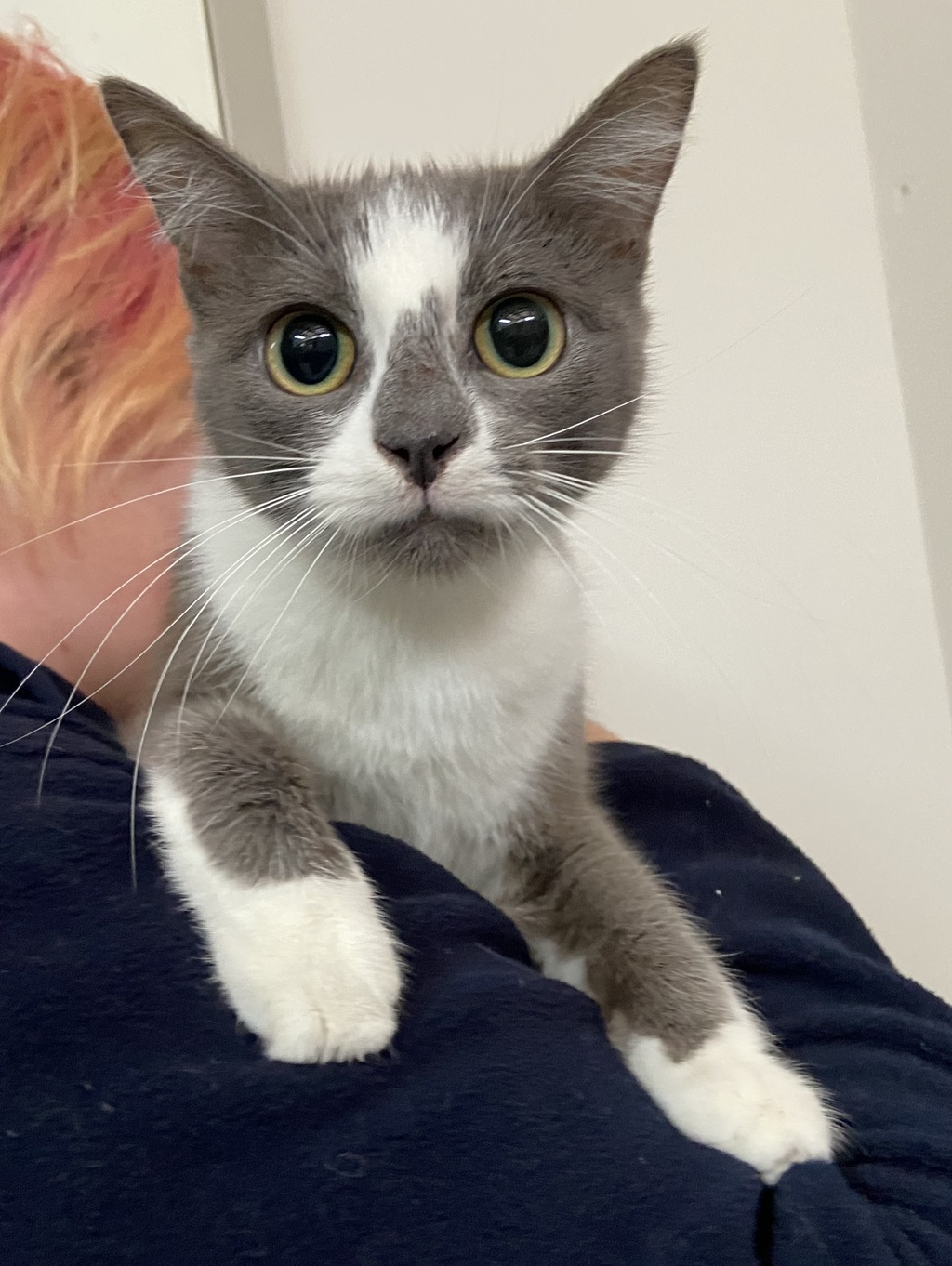 Kenpo is one of the shelters most cuddliest cats!!! She adores being picked up and cuddled and really LOVES having the company of other cats. Kenpo came in with her 8 other siblings and absolutely adores being with them all the time. She would need to go to a home with another very social cat, so that her confidence will continue to shine.