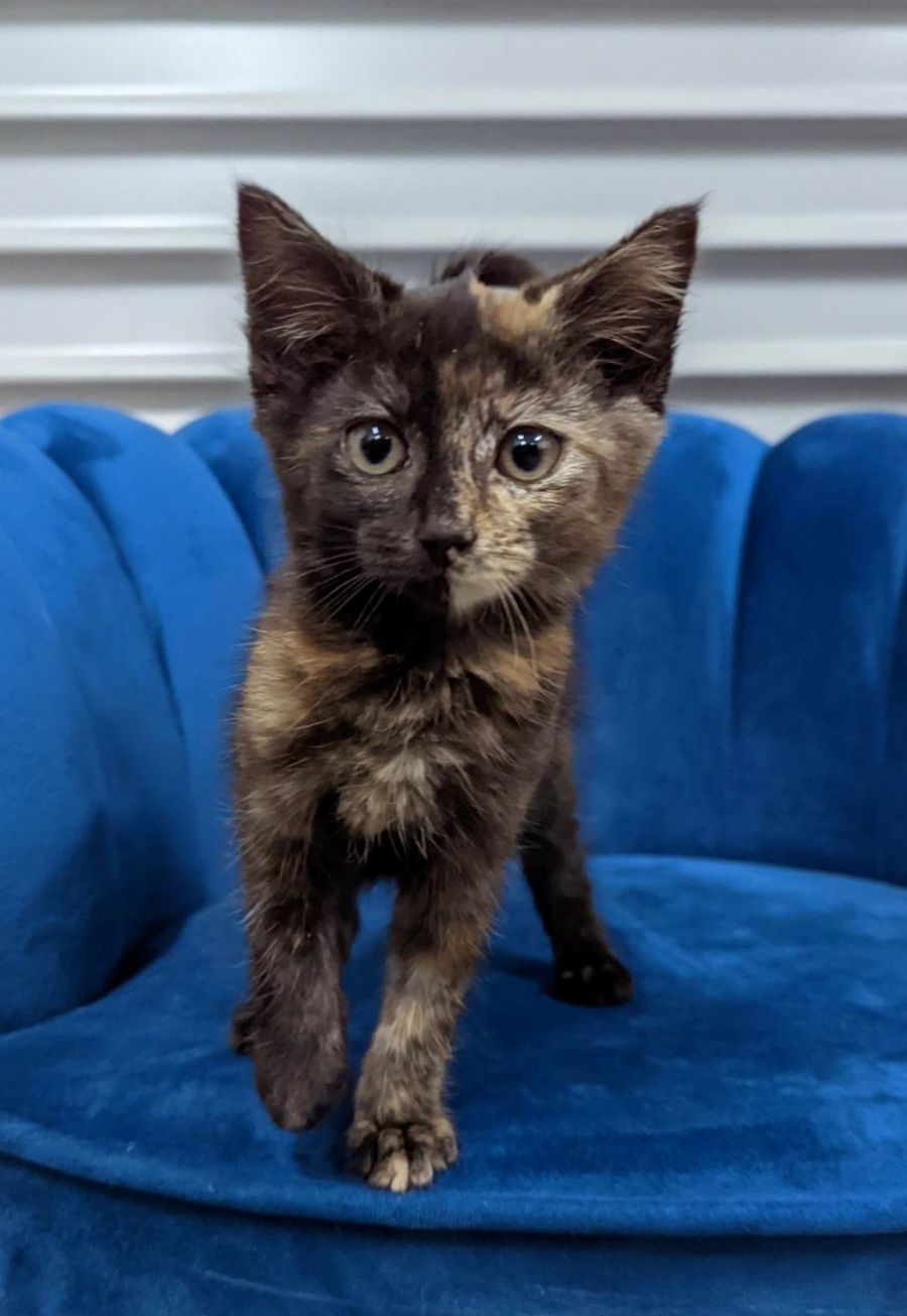 Peggy & her litter mates are all very sweet & playful kittens. They can be a little timid when you first meet them, but they quickly settle. Peggy is unfazed by general handling & appears to be quite affectionate.