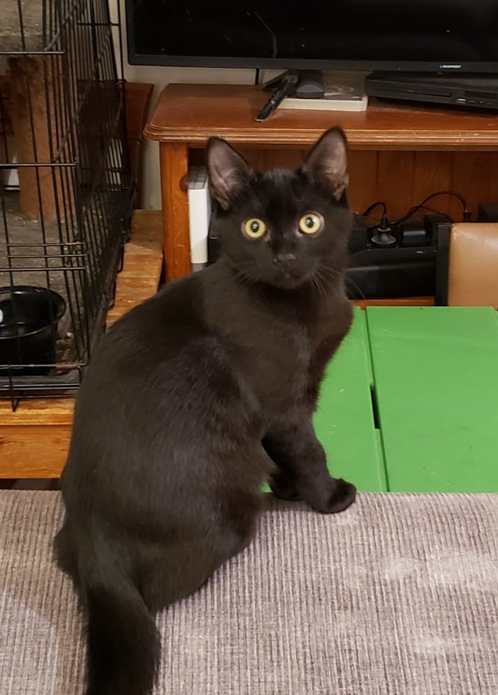 There are really no words which capture how SUPERB Kismet is. Sweet, snuggly shiny house panther comes kinda close. With a stylish inky black coat, not a fleck of white, and the brightest green eyes you've ever seen, you'd be mad not to pay attention to him.