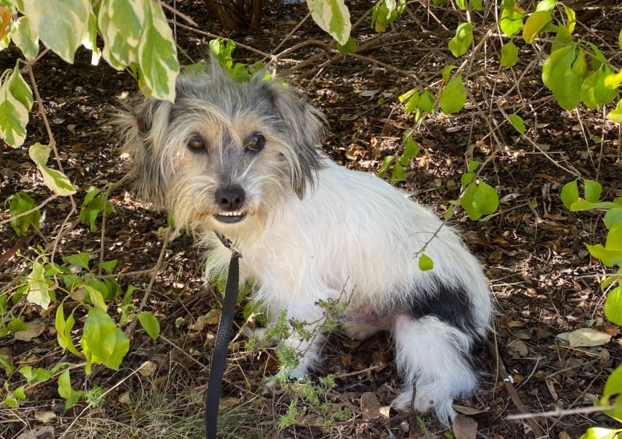 He has figured out the doggie door, and loves the freedom to come and go as he wishes. He loves to find a sunny spot on the deck to snooze in.