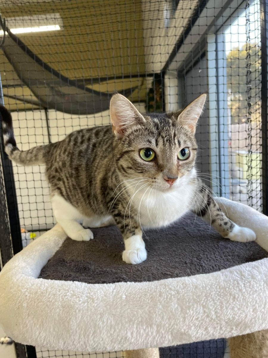 Meet Regina George, an absolutely stunning young cat with beautiful markings and the most mesmerizing green eyes. She loves to be the centre of attention, always enjoying a good sun-bathing session in the window and bird watching. Regina George is confident and sociable with other cats, always wanting to make new friends.