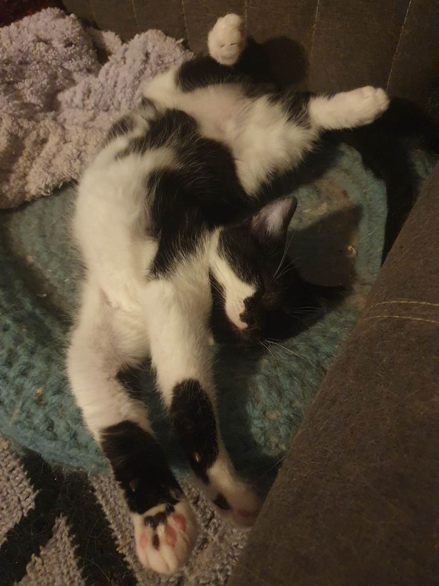 I'm a super cuddly boy that will follow you around all day until you sit down and I can get some lap time! I don't mind being picked up either! As long as I have human attention, I'm a happy little chappy. If you're looking for a snuggly kitten that's also ok to be at home while you go to work all day, I'm the boy for you! If you do work though, I'd prefer to have a cat friend to keep me company like I do in my foster home.
