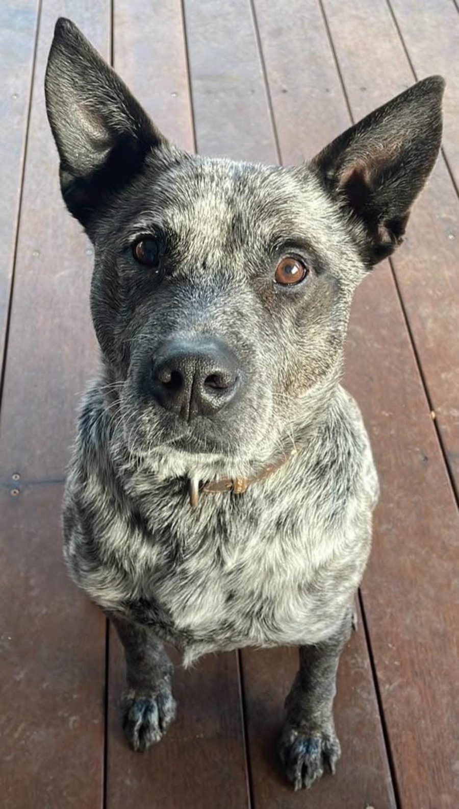 A lovely blue heeler named "Mickey!", 2 years old, good with other dogs.