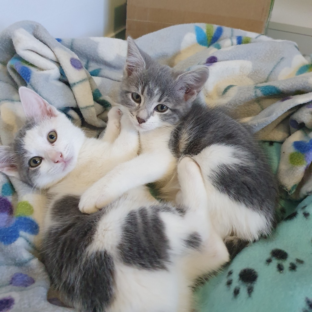This delightful little kitten is inquisitive and full of fun. She likes to spend her time playing, wrestling and chasing her sister Poppy. When she's tired she is partial to a warm lap to cuddle up on.
