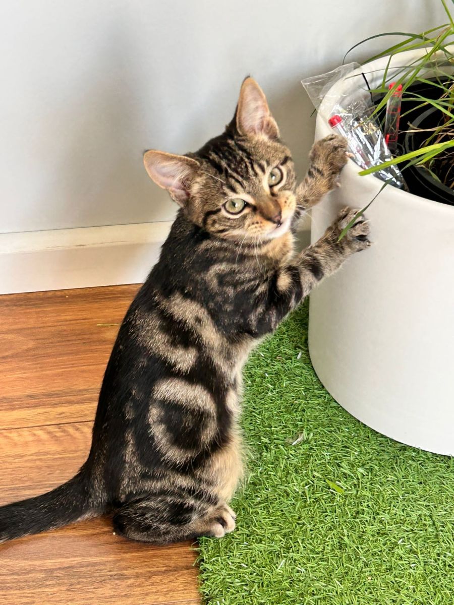 Syd is an outgoing and playful rescue cat who loves being around humans. He is full of energy and loves to explore, making him an adventurous companion for any family looking for a furry friend. Despite his independent streak, Syd loves snuggling up to his humans and can often be found asking for belly rubs.