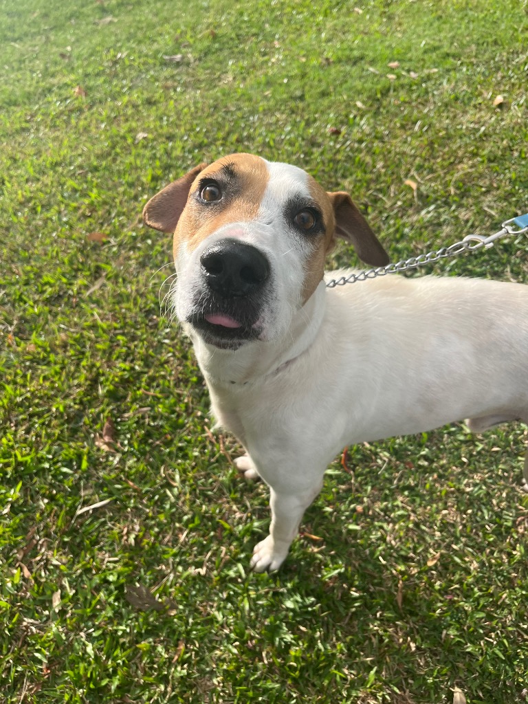 Magnum, he has been nicknamed ""Doofus"" because he's like a clumsy toddler, who just wants all the LOVE l💕💗. Whilst he's had it tough before Arriving with us (He came to us with a ""healed"" injury, a spear? a knife? we don't know, but it meant he was in constant pain and his bag leg required urgent orthopedic surgery to repair, he had a plate fitted and he has been on crate rest while he healed) He has had his heartworm treatment and is needing a quiet place to recuperate while waiting for his forever home to find him.