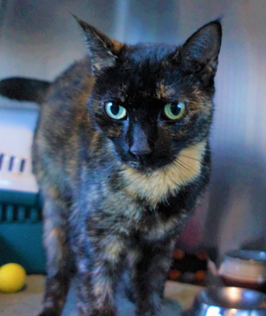 Hi there, meet Chloe! She is a 6-year-old female domestic shorthair cat with a beautiful tortoiseshell colour. Chloe is a quiet and sensitive soul who likes to take things easy and observe her surroundings. She is an indoor only cat and prefers the comfort and safety of her home.