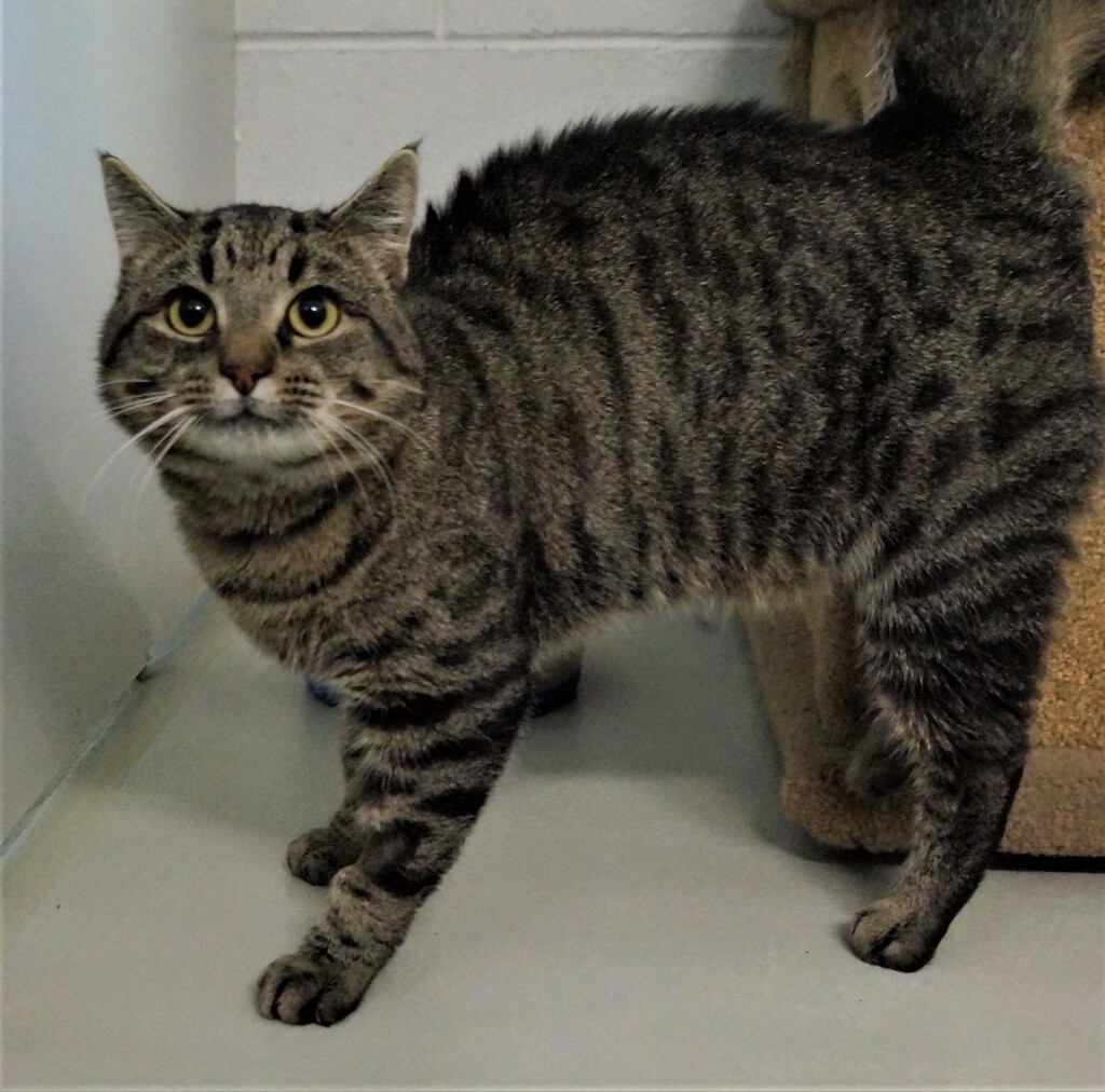 Meet Elvis, a gorgeous domestic shorthair cat with handsome tabby coloring. He is a quiet boy but he can be very outgoing once he gets to know you. Elvis loves to eat and enjoys trying different kinds of food. He has lived with another cat before and enjoyed their company.