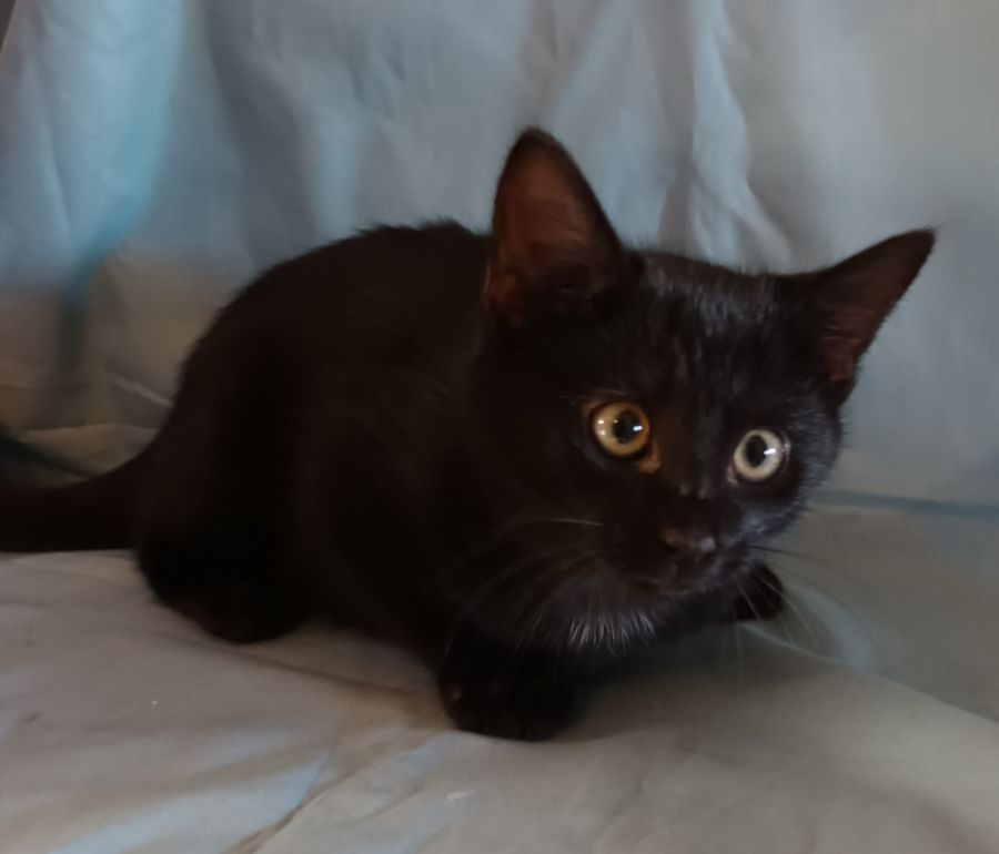 Meet Spook. This handsome little guy is full of energy and loves racing around and playing with his kitty friends and toys. Spook is still a little shy, but when you catch him, he loves to snuggle in and purr.