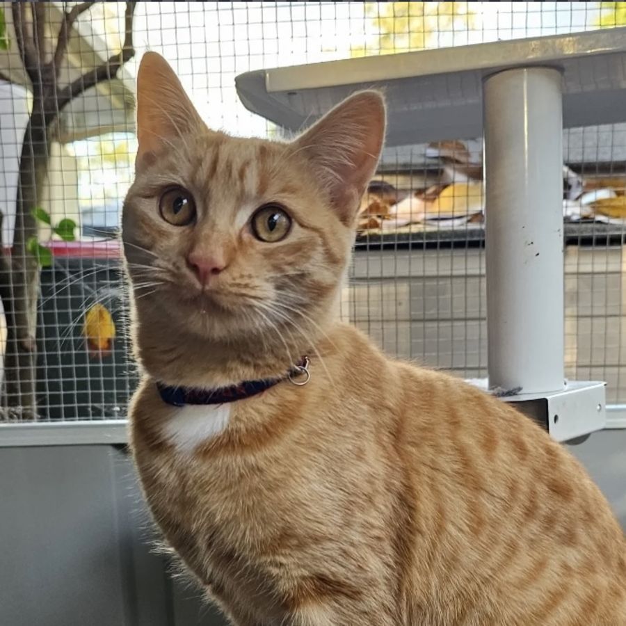 This sweet girl was part of a small group of stray cats that a lovely family had taken in. They reached out to us for help and we were able to take in all 5 kitties. Megsy was part of the first litter from her mumma cat Fuzzy (recently adopted) and is the older sibling to Crush, Fanta and Fizz.