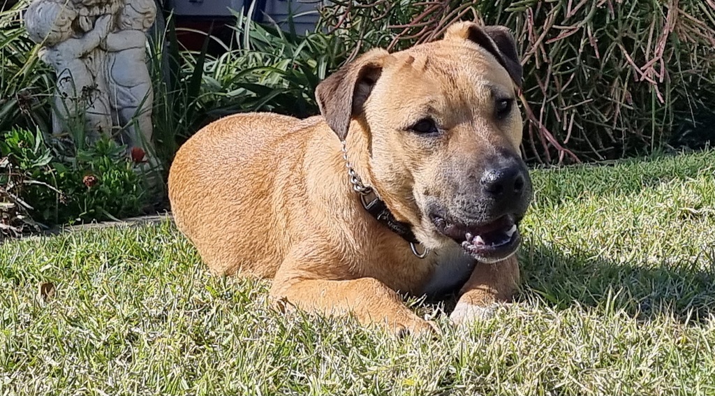 Cameron is just over 7 month old staffy cross loves to play with his foster companion Tucker and just has a lot of fun, and not really caring about much else. He loves going walking, doesn't mind the odd run or two either,So he would be suited for an active family that also has another dog(s) as he is used to having the company of other dogs around him and.