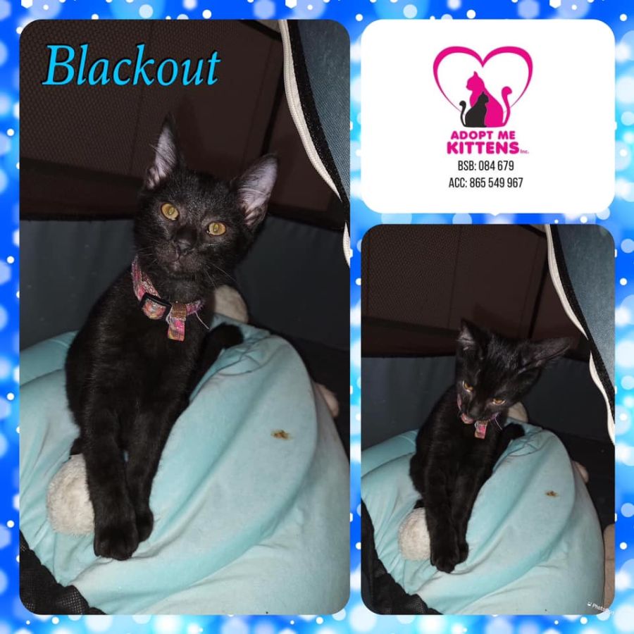 Blackout is a gorgeous playful boy. He has a sweet purr and loves attention. A lovely kitten. He was raised as a bottle baby so is human orientated but also loves other kitties.