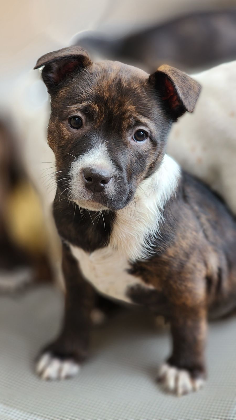 This bundle of joy sits and waits for her meals to be served, and once she has a full belly, its play time. She loves playing chase with the other pups and wrestling with her toys. She gets so excited when told she’s a good puppy and loves lots of smoochy kisses from his foster mum.