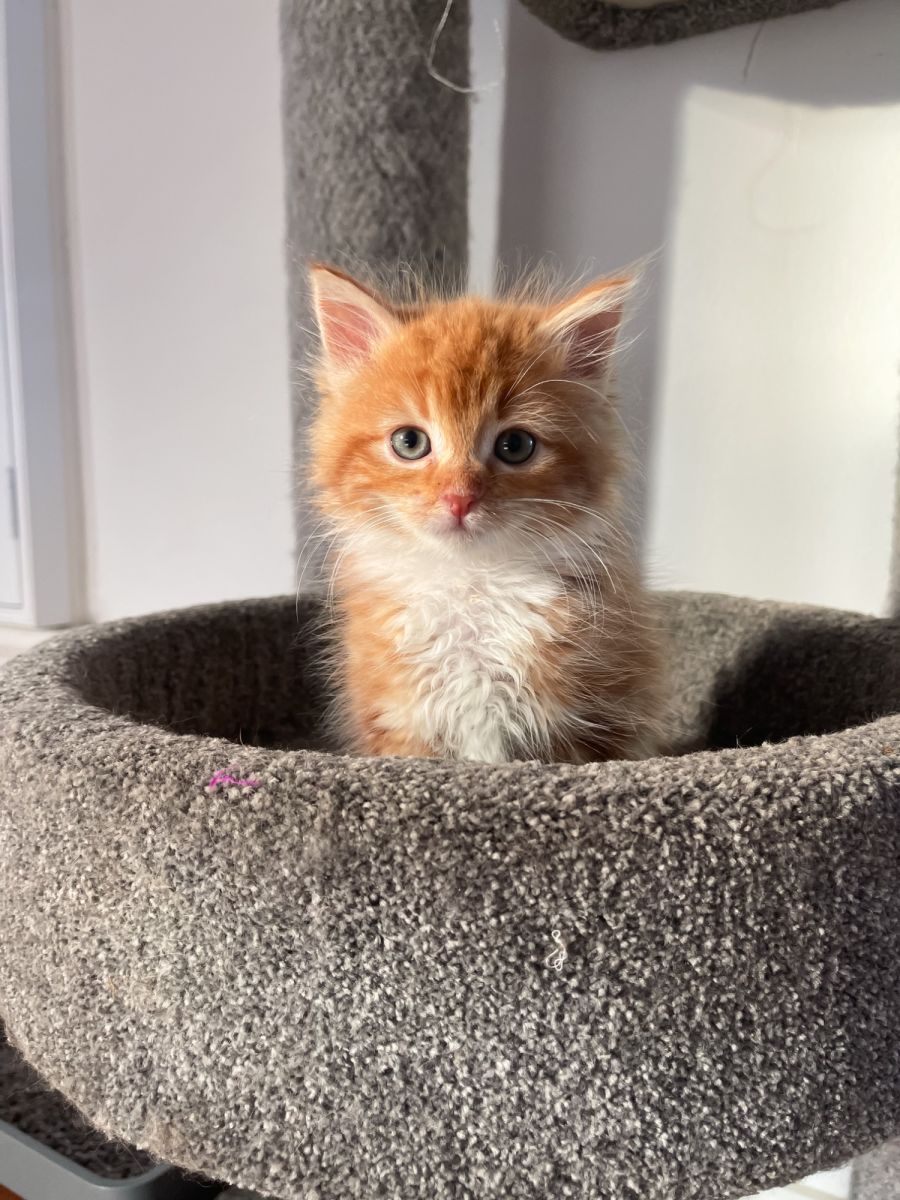 Sunny is an energetic and spunky little ginger kitten who loves nothing more than human companionship. She is always eager to follow her humans around the house or be where they are.