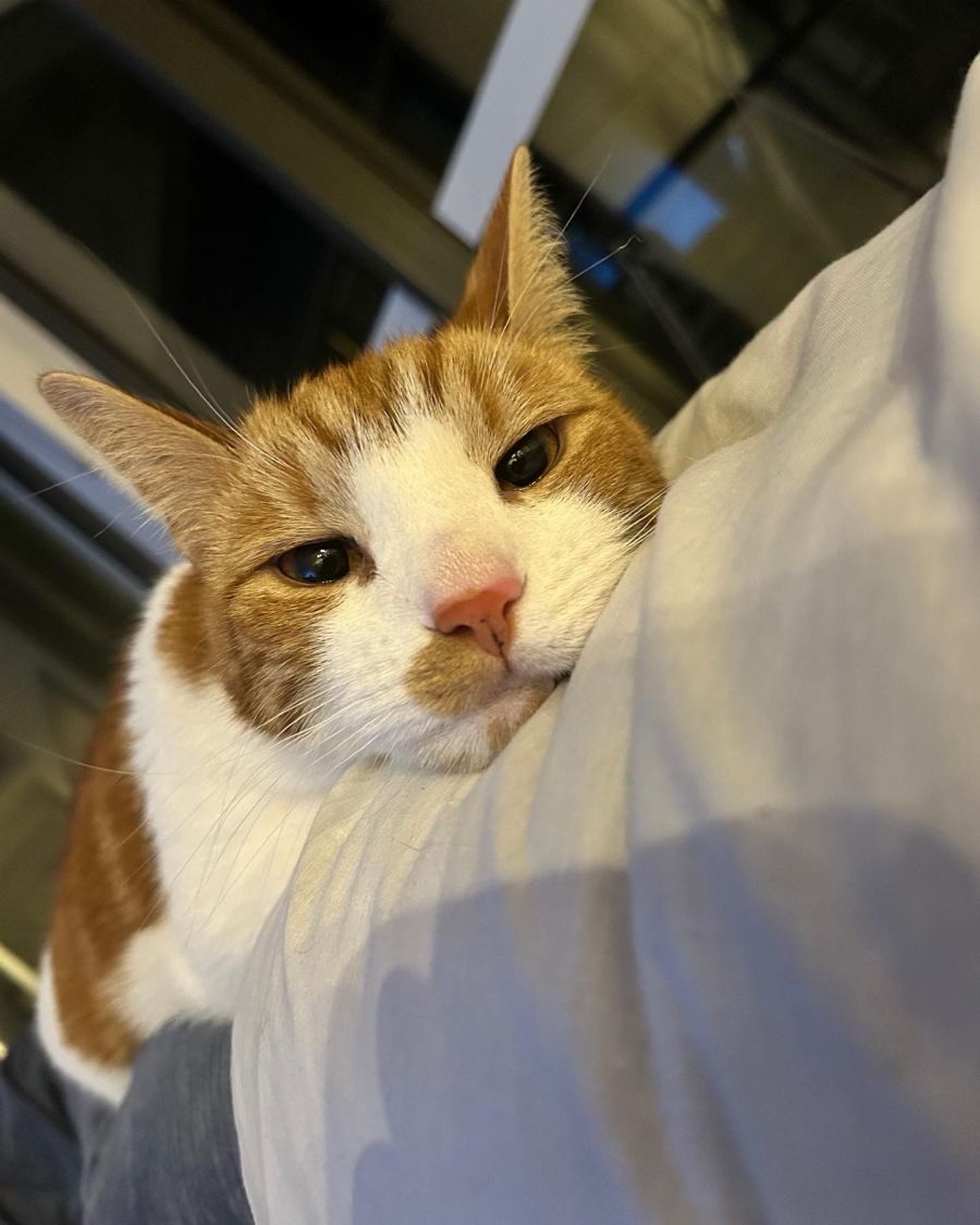 Meet Byron, a charming feline companion who’s finding his way in the world. He's learning to overcome his initial shyness, revealing a curious and spunky character underneath. While he might still be a bit jumpy and wary of his surroundings, his curiosity wins over, leading him on top of his human's bed. His lively personality shines when he indulges in his 'zoomies', often after spending a good part of the day by himself.