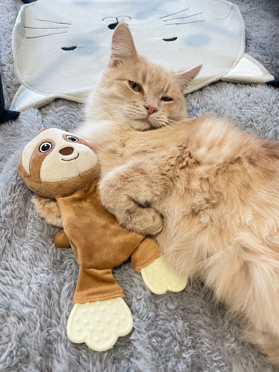 Among Molly's favourite things are her round cushioned bed and her beloved blue blankie, where she loves to sleep and lounge. She likes to sit by the window and look outside, as she reminisces about her time as an outdoor cat. Molly is currently being trained on a harness to enjoy supervised outdoor play and bask in the sun.