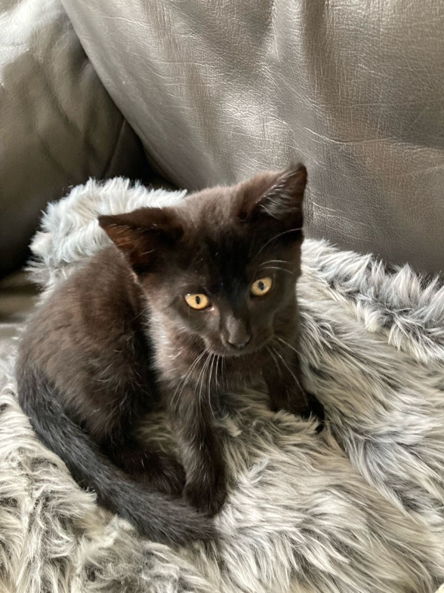 Oscar is a medium haired fluffy black kitten. He loves playing with his brother and is used to kids of all ages! He loves a cuddle and snuggling into your chest whilst watching tv.