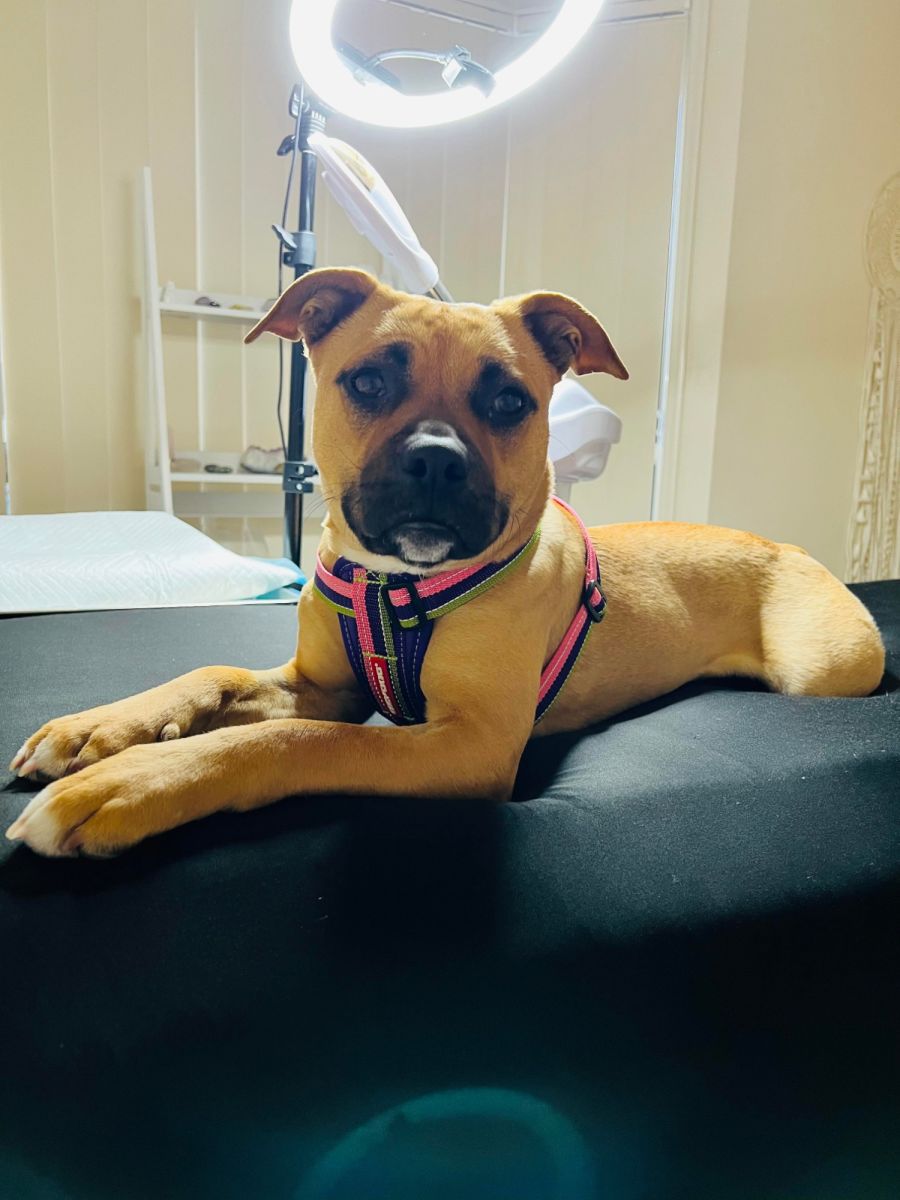 Bee as a baby was hit by a car and joined us in rescue, she spent weeks on recovery before finally being allowed to be a normal doggo. Bee has settled in brilliantly, she loves being with her humans, she is totally house trained, adores her children and is so gentle with them. She is great with other dogs and just wants to run and play with them. Bee is good on leash, she does get excited and needs to be reminded of her manners sometimes.