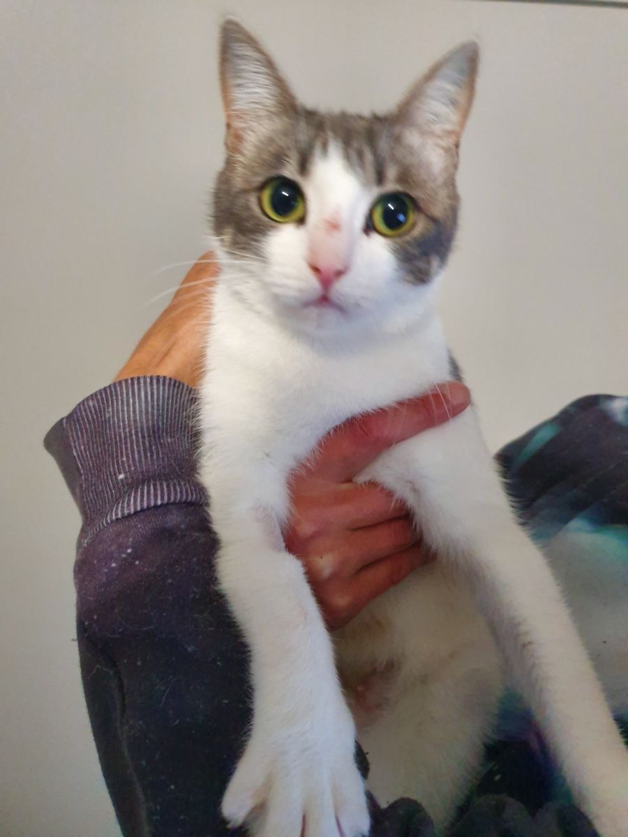 Meet Frankie, the sweetest little tabby you’ll ever meet! Frankie is very smoochie and loves to cuddle up on your lap for a good petting. She's also quite playful and loves chasing balls or batting at strings – he’s sure to keep you entertained!