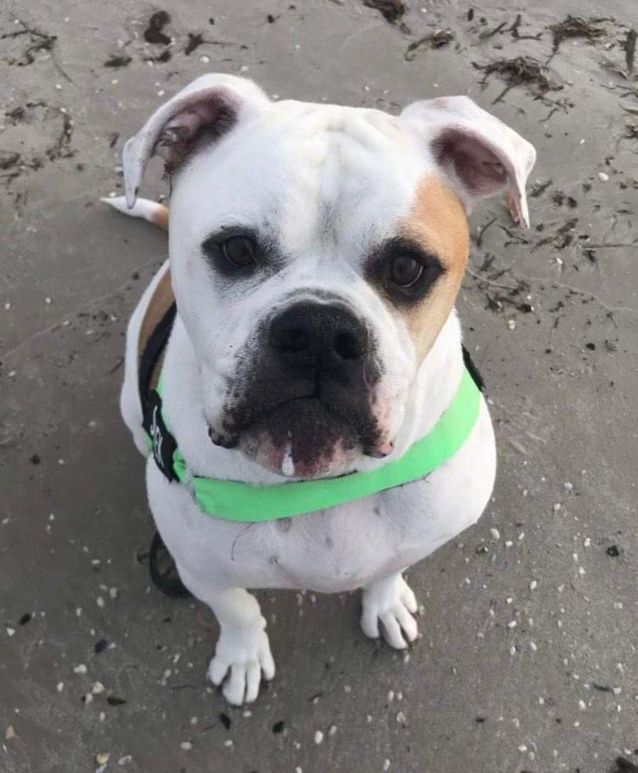 Meet Rex, a nearly 6 year old American Bulldog! Rex's favourite activities include cuddling on the sofa and being wrapped up in his blanket, playing tug of war, going to the beach, laying in the sun, eating food, going for walks and being with other dogs.