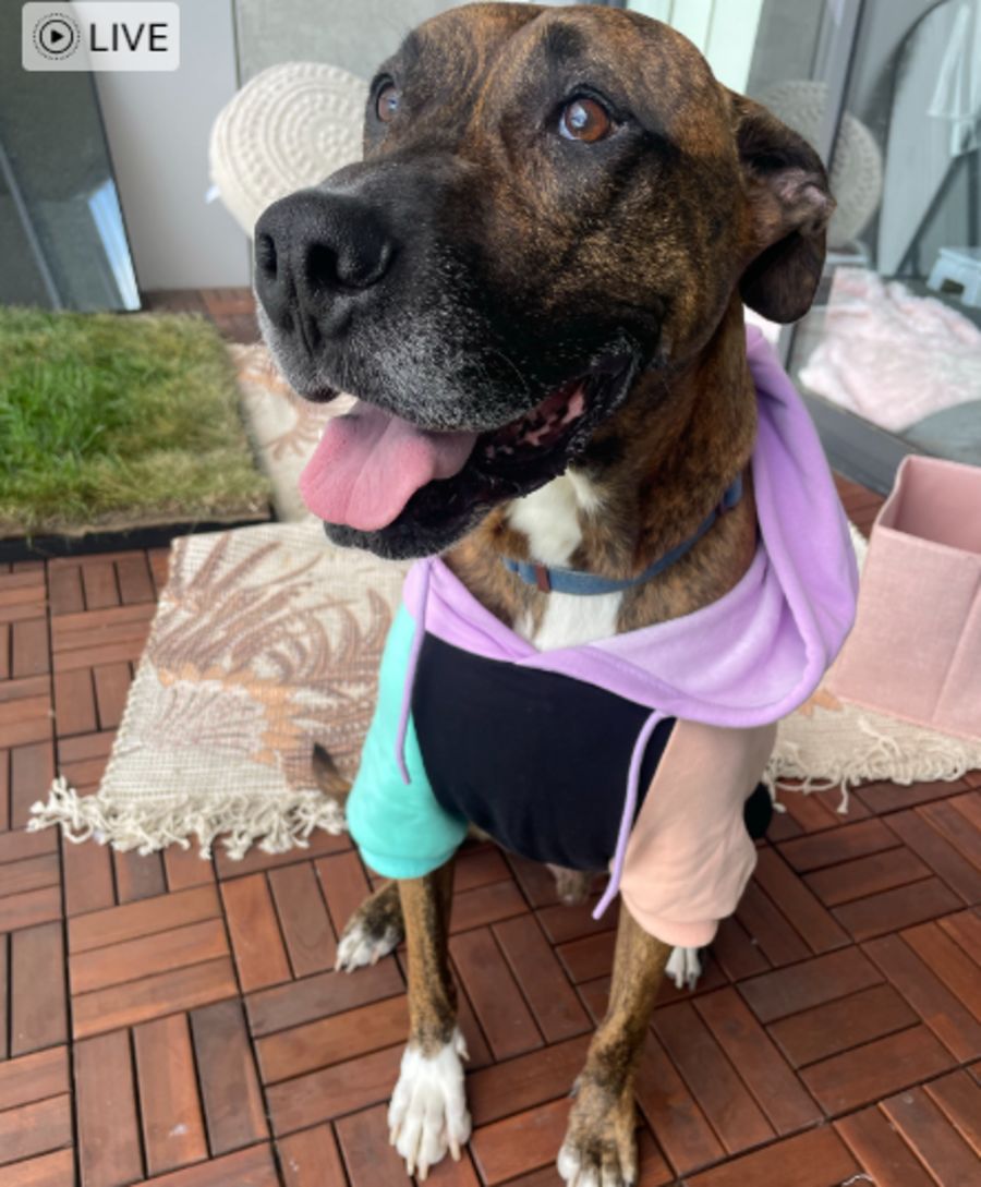 He’s a well-dressed boy in winter with hoodies, a puffer jacket and cute pjs. He’s known to sport a bandana in summer and down a ‘doggy beer’ (bone broth mix) on a quiet Sunday in. Odin is a loving dog who brings much joy.