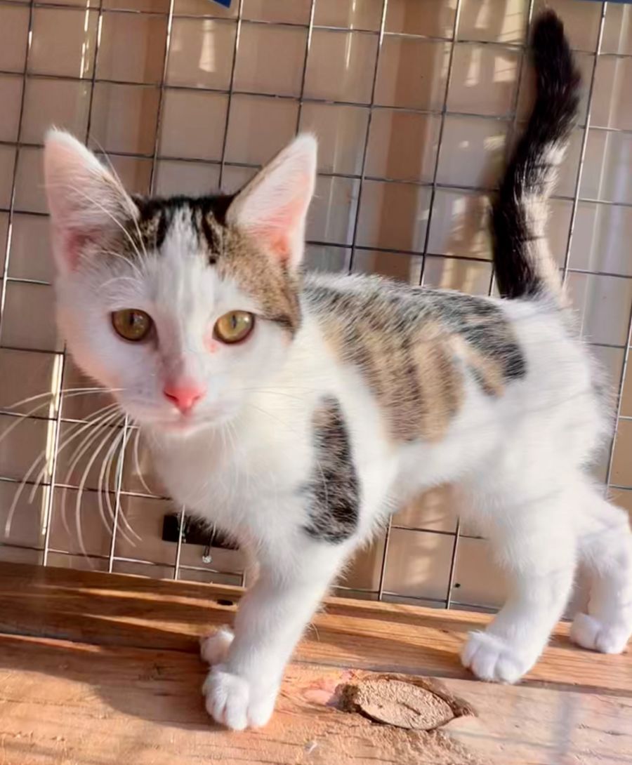 Rita is an affectionate and playful female kitten who loves to be the center of attention. She is confident and friendly, and will quickly climb on your knee for some cuddles and pats. She loves interacting with people, and is always up for a game or two. Rita would make a great addition to any household looking for an affectionate companion. She has a strong personality, making her both entertaining and loyal. With plenty of love and attention, Rita will provide endless amounts of joy!