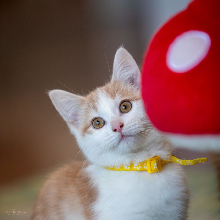 I’m #4 in the cheesy kitten gang, but don’t let my stinky name put you off! I’m actually a really sweet guy. Foster mum says I’m Mr Independent, as she often finds me tucked away in a warm spot taking a solo nap. She also says I’m not much of a lap cat, though I don’t mind curling up close by, and I’ll often venture over to investigate what you are doing.
