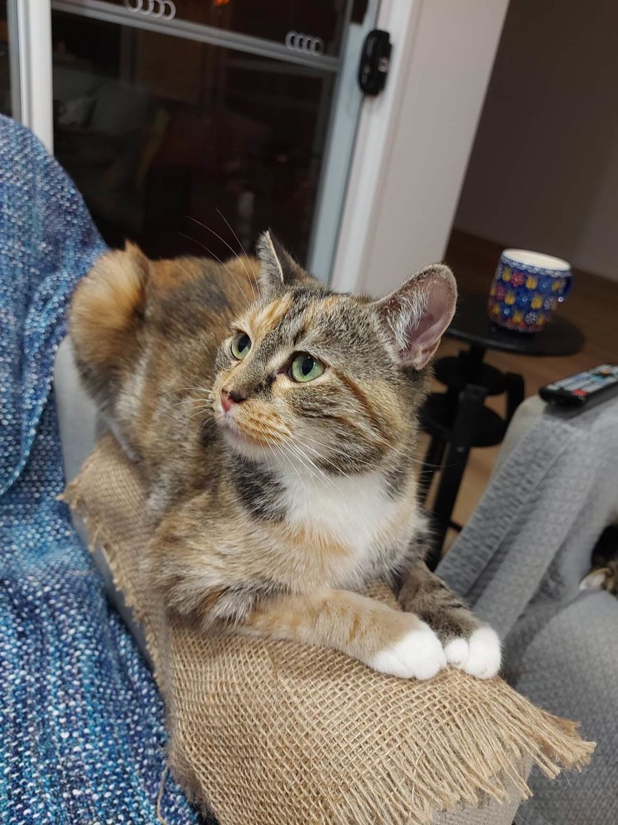 If I tell you about her can you please help. She needs something amazing, because she is amazing young girl. Amber is pure gem. Her coat has all beautiful shades of natural Baltic Amber stone and her eyes like an Emerald. She is very loving cat,she loves attention and company,she follows me around house and checks everything I am doing. She is also very confident she is not scared of dogs and cats and always comes to say hello to them. She doesn't scared of visitors she let's them patt her and let's everybody know that she enjoys head scratches by loud purrs. She wasn't tested around young kids,but seeing how confident she is I am pretty sure she will be comfortable around kids any age. She is young and active, she loves her zoomies and she loves climbing up on top shelves. She is very fussy eater and she likes to eat small portions but often. She is very chatty. She likes talking to you and tell everything she is feeling but If she is hungry she will make sure that you hear her demanding loud voice asking for her food. She enjoys her indoor life,but because she is young she still trying to get out if you leave the door open. So new owners have to very very careful with that.She chats like a human🤣She has different patterns of vocalising and different notes. If she is not happy she makes a baby crying voices 🤣After her zoomies and she gets tired She loves curling on her humans laps or chest and be patted. When I stop patting her her makes this cute voice to continue.