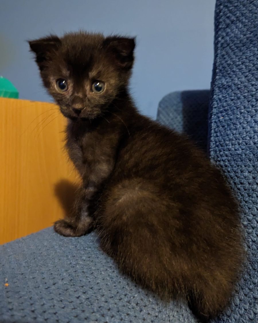 Luna is a delightful young cat with an outgoing personality. She loves being around people and shows her affection by chasing after them for attention.