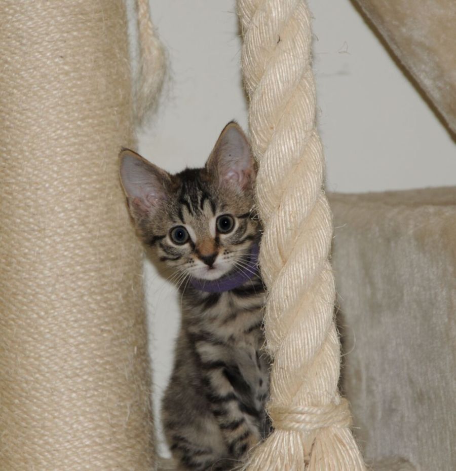 All of these activities, together with chasing and wrestling with the other cats can make me very tired. I am a snuggly, purring kitten who loves nothing better than cuddling up on my foster parents laps or with the older cats living in this home.