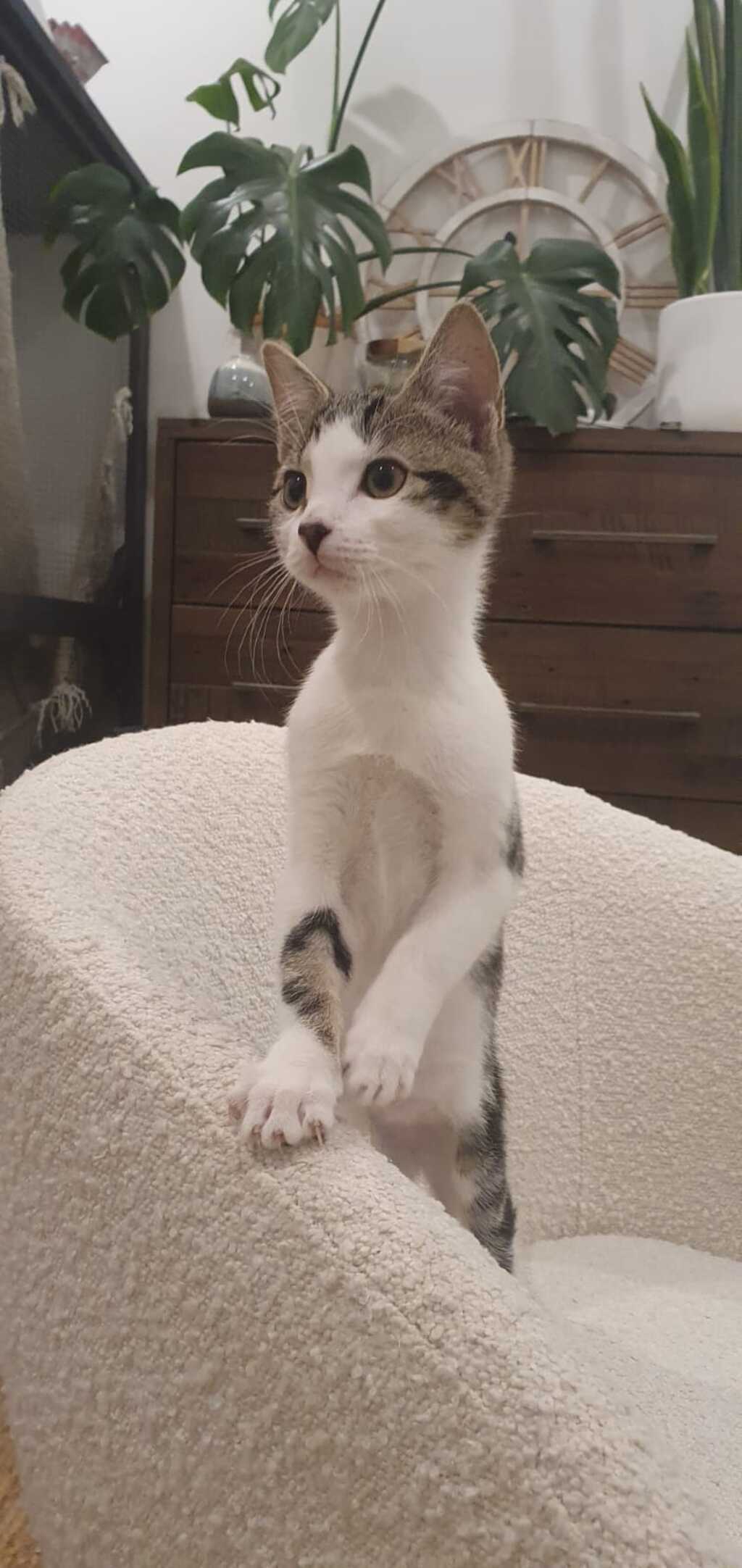 Athena has an obsession with human legs and will try to climb up on you to get some cuddles.