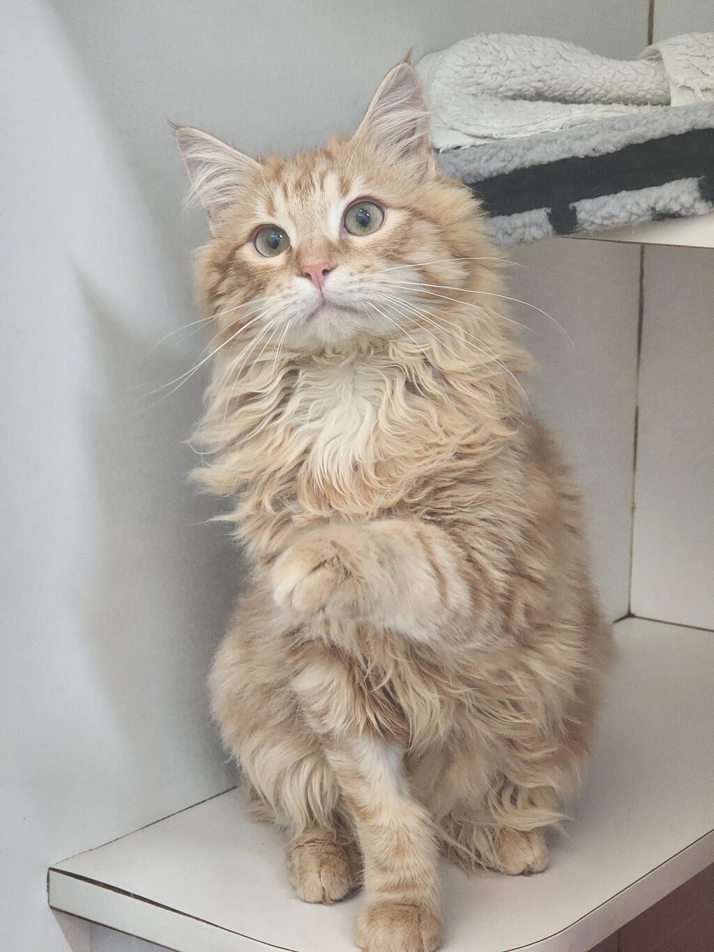 Sunkist seems to eat most things but above all he LOVES his dine treats. This loveable guy is very playful with those cat wand toys, but really, Sunkist just enjoys any sort of human interaction.