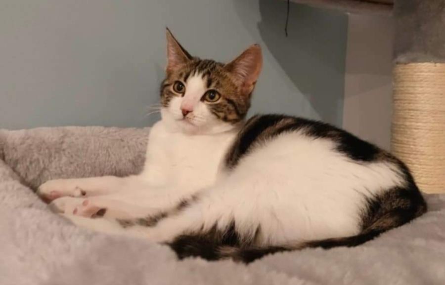 I'm a happy and playful kitten who loves attention and affection. I can be homed with children and other cats. I haven't been tested with dogs. I must be kept indoors only for my own safety.
